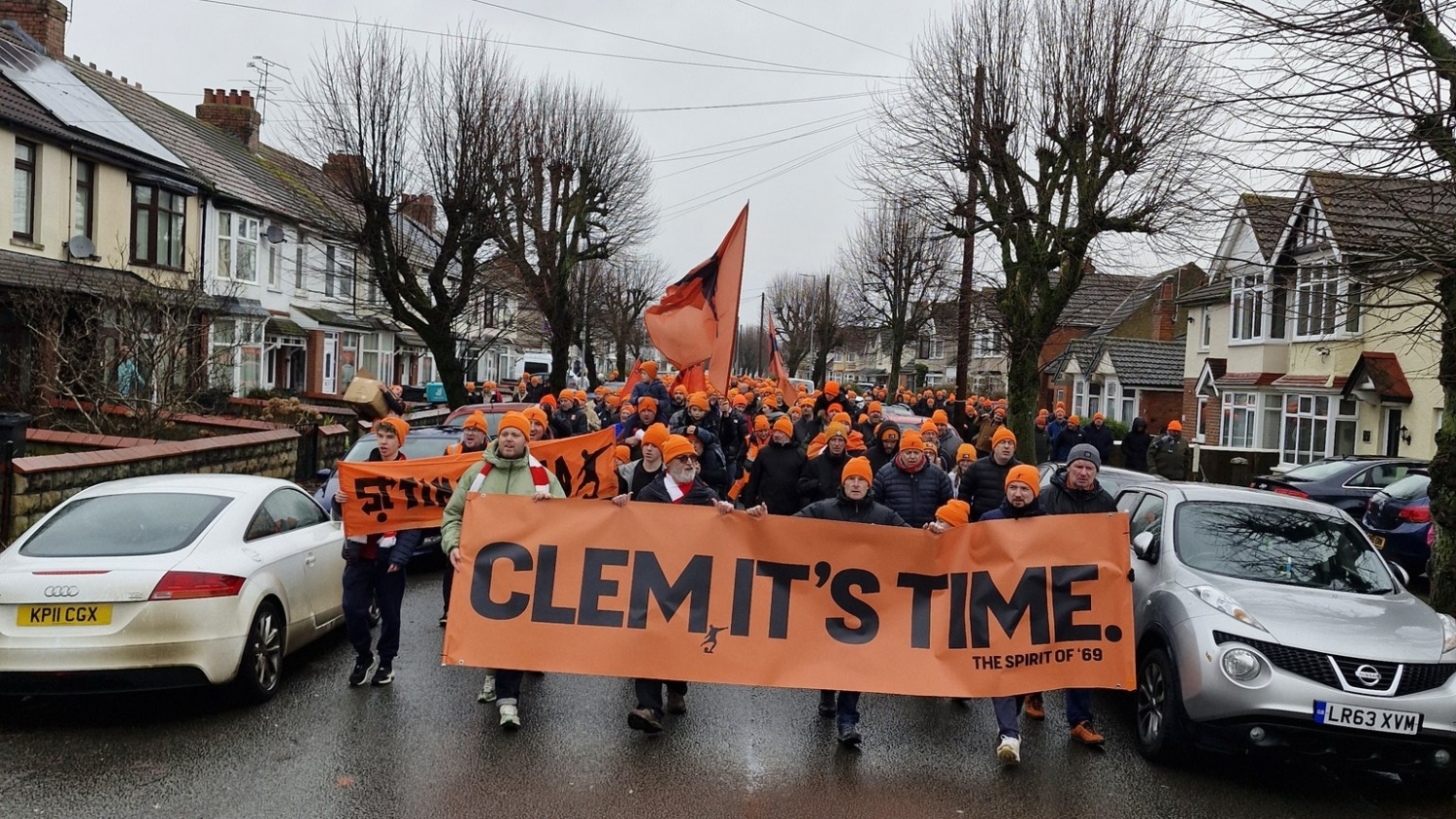 On Saturday, around 250 fans – most donning orange hats – congregated outside the Arkell’s Stand in a show of protest against the club’s ownership.