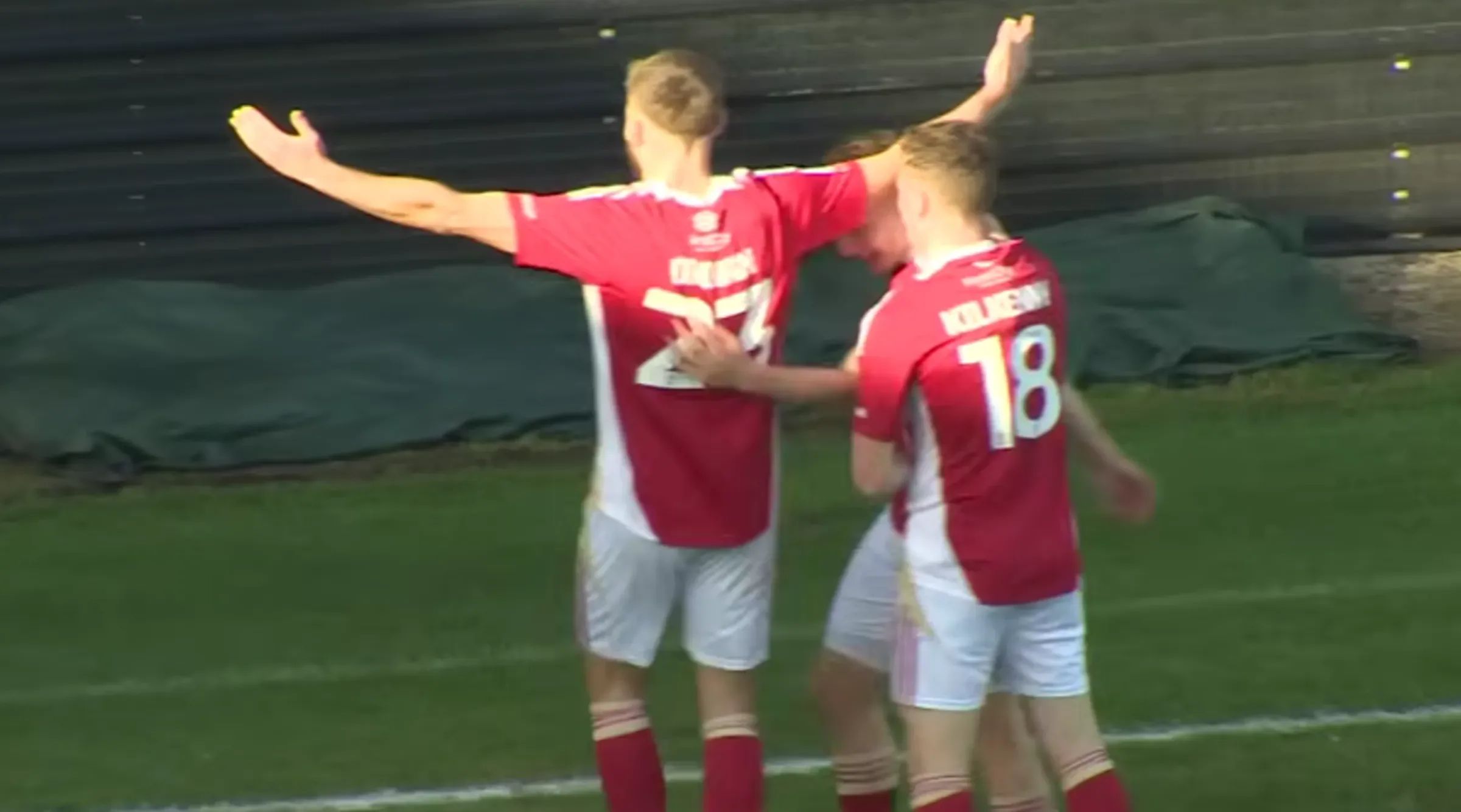 In the 11th minute of Salford City’s 4-3 victory over Colchester United, Kadeem Harris responded to his equaliser by standing arms crossed and chest pumped towards the travelling supporters, before making a gesture with his hands in their direction. The celebration covered nearly 10 seconds. He was not booked.